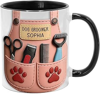 Personalized Dog Groomer Mug, Pet Grooming Coffee Cup,Paw Prints and Grooming To..